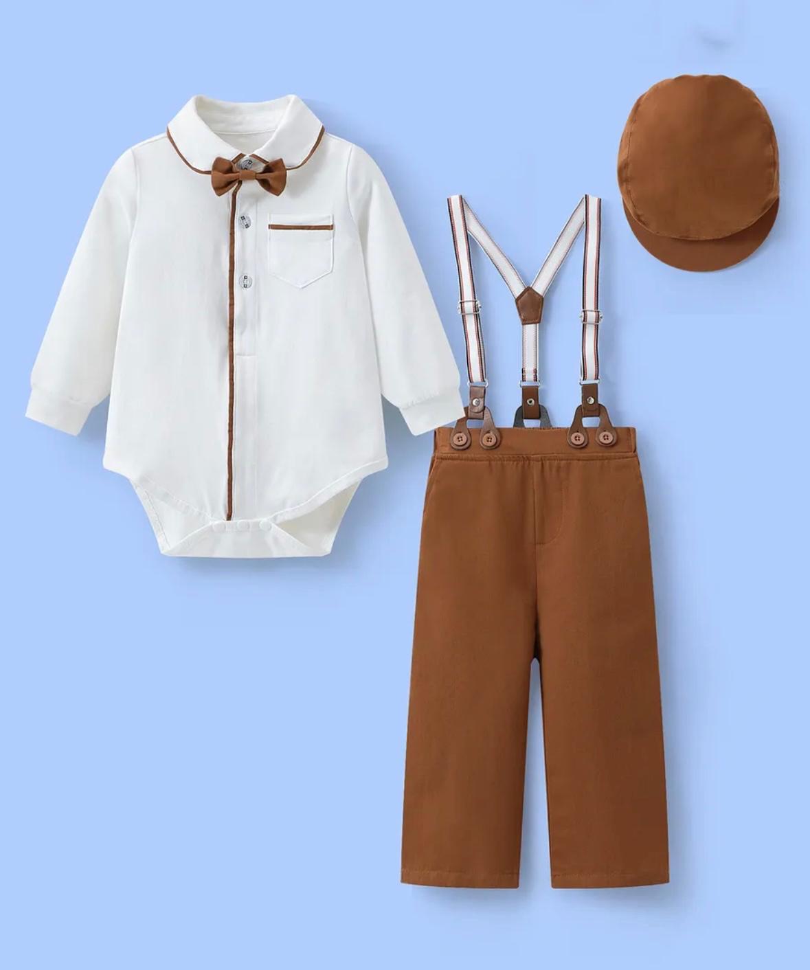 • 4-Piece Baby Outfit Set – Romper, Pants, Cap, and Gallace (Size: 6-9M)